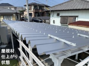 ご相談、検討の結果、出来るだけ長持ちさせる事を優先したいという事になり、スレート波板に換えるという事て施工をご依頼いただきました。