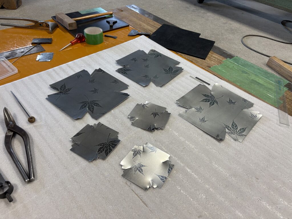 こちらは、今はほぼ使われなくなった紅葉柄入りのステンレス板です。
